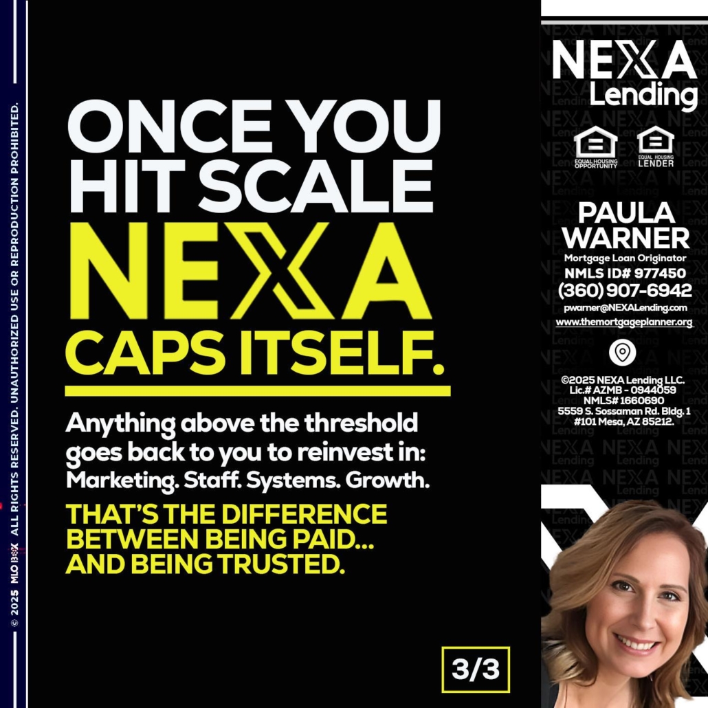 Hi, my name is Paula Warner. I’m a Loan Officer with NEXA Lending LLC., offering personalized mortgage solutions, fast customized quotes, great rates and service with integrity.