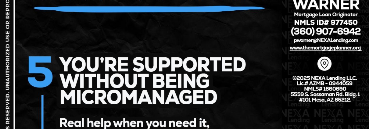 7 THINGS (5) - Paula Warner -Mortgage Loan OriginatorHi, my name is Paula Warner. I’m a Loan Officer with NEXA Lending LLC., offering personalized mortgage solutions, fast customized quotes, great rates and service with integrity.