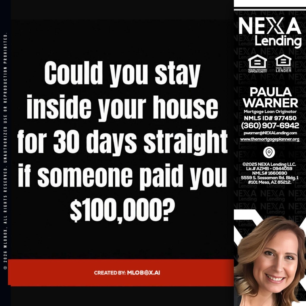 Hi, my name is Paula Warner. I’m a Loan Officer with NEXA Lending LLC., offering personalized mortgage solutions, fast customized quotes, great rates and service with integrity.