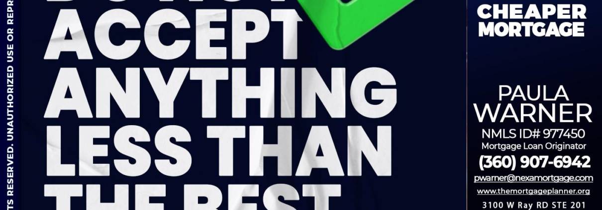 Hi, my name is Paula Warner. I’m a Loan Officer with NEXA Mortgage LLC., offering personalized mortgage solutions, fast customized quotes, great rates and service with integrity.