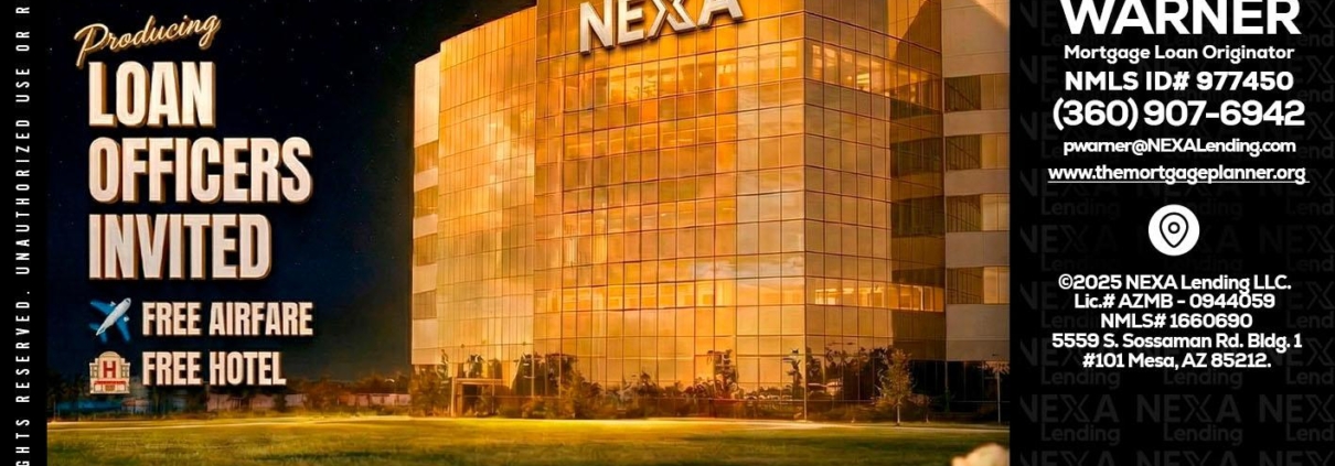 Hi, my name is Paula Warner. I’m a Loan Officer with NEXA Lending LLC., offering personalized mortgage solutions, fast customized quotes, great rates and service with integrity.