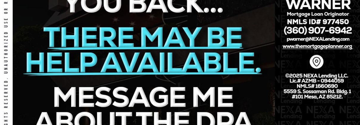 Hi, my name is Paula Warner. I’m a Loan Officer with NEXA Lending LLC., offering personalized mortgage solutions, fast customized quotes, great rates and service with integrity.