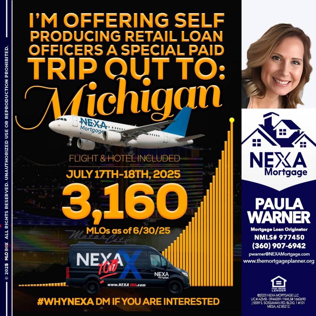 Hi, my name is Paula Warner. I’m a Loan Officer with NEXA Mortgage LLC., offering personalized mortgage solutions, fast customized quotes, great rates and service with integrity.