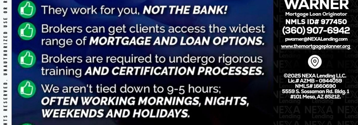 Hi, my name is Paula Warner. I’m a Loan Officer with NEXA Lending LLC., offering personalized mortgage solutions, fast customized quotes, great rates and service with integrity.