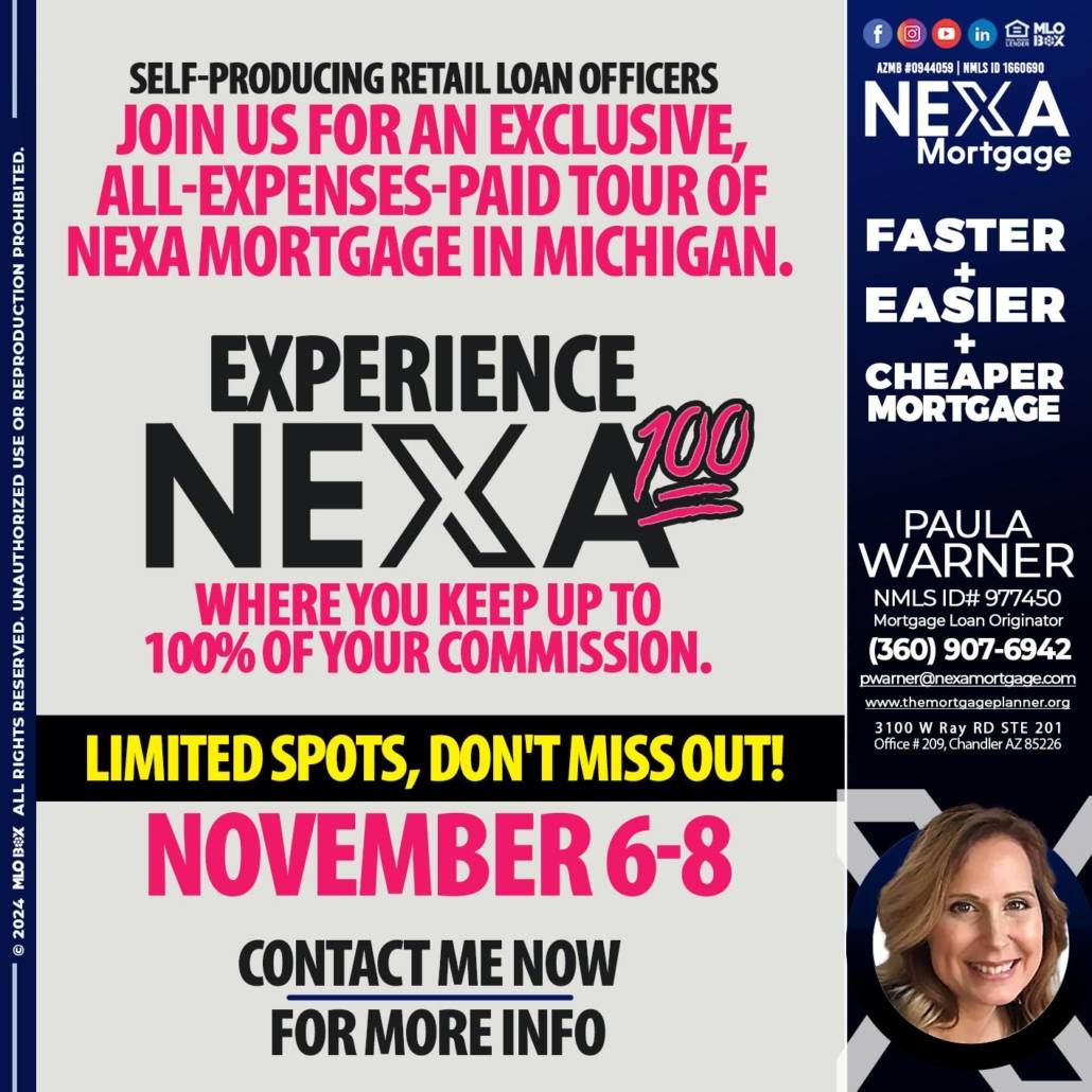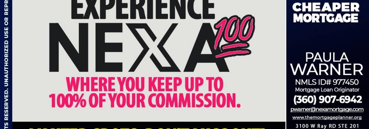 Hi, my name is Paula Warner. I’m a Loan Officer with NEXA Mortgage LLC., offering personalized mortgage solutions, fast customized quotes, great rates and service with integrity.