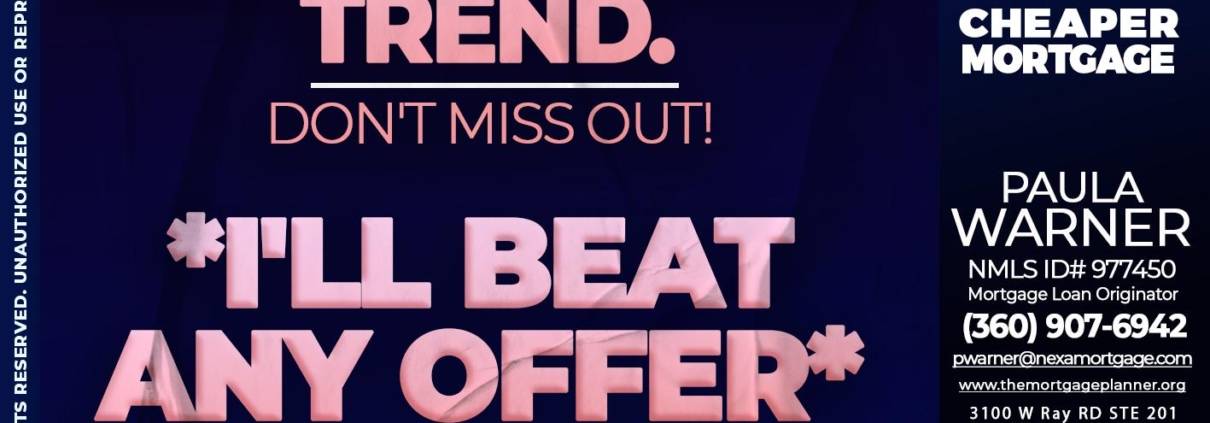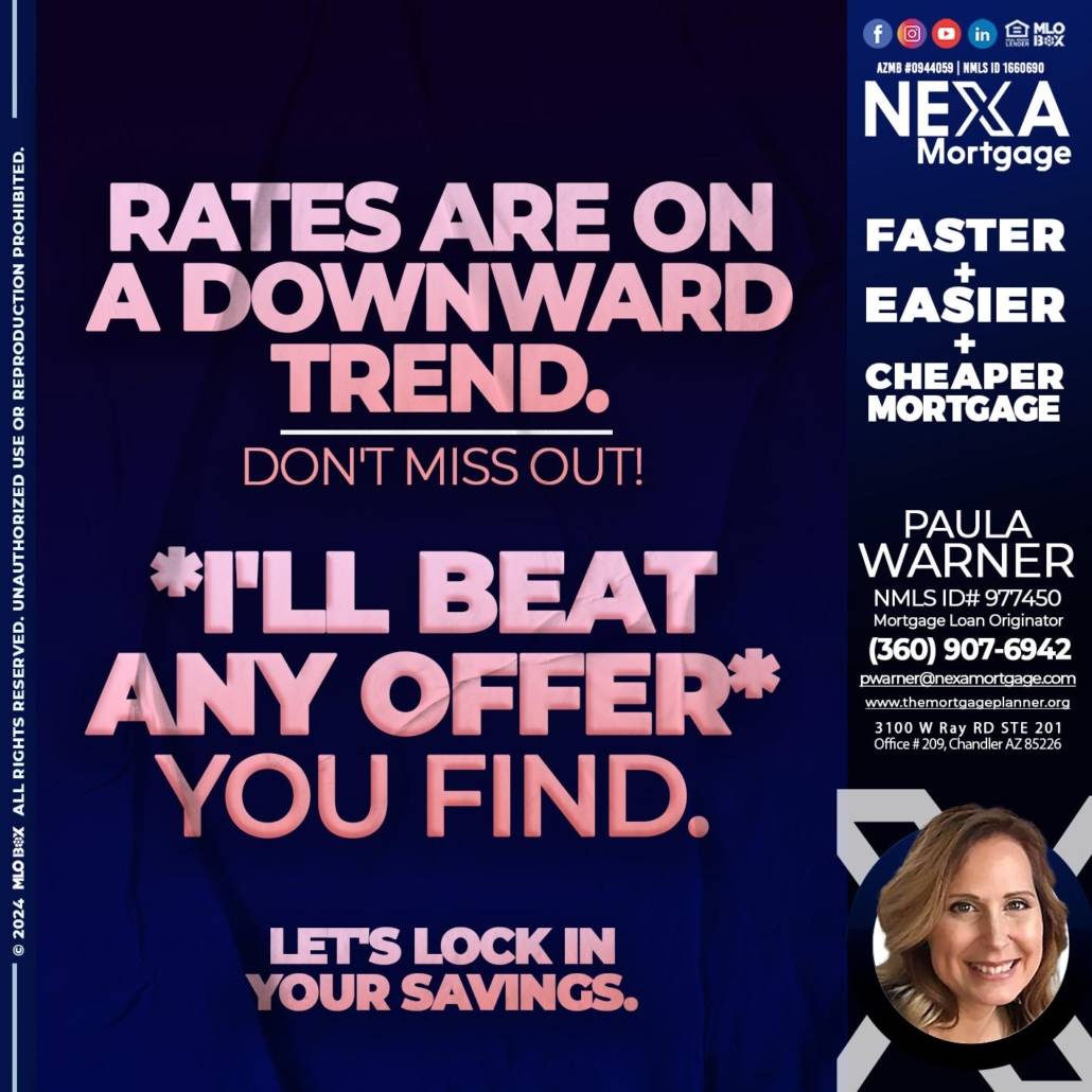 Hi, my name is Paula Warner. I’m a Loan Officer with NEXA Mortgage LLC., offering personalized mortgage solutions, fast customized quotes, great rates and service with integrity.