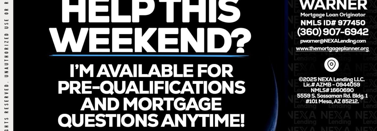 Hi, my name is Paula Warner. I’m a Loan Officer with NEXA Lending LLC., offering personalized mortgage solutions, fast customized quotes, great rates and service with integrity.