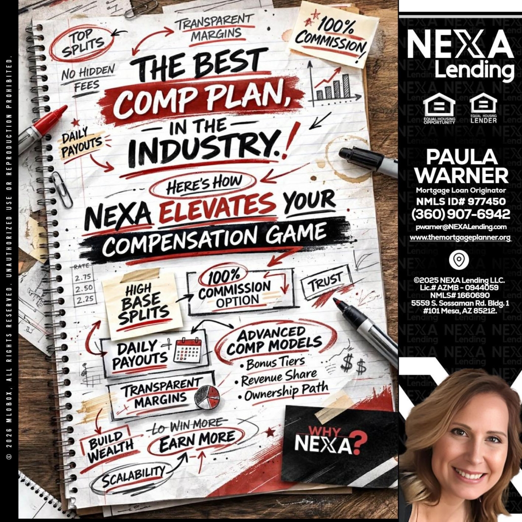 THE BEST COMP - Paula Warner -Mortgage Loan OriginatorHi, my name is Paula Warner. I’m a Loan Officer with NEXA Lending LLC., offering personalized mortgage solutions, fast customized quotes, great rates and service with integrity.