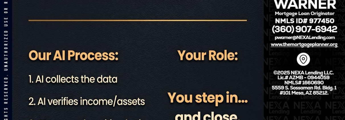 Hi, my name is Paula Warner. I’m a Loan Officer with NEXA Lending LLC., offering personalized mortgage solutions, fast customized quotes, great rates and service with integrity.