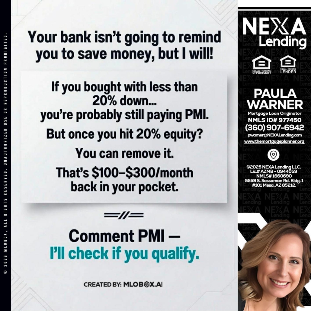 Hi, my name is Paula Warner. I’m a Loan Officer with NEXA Lending LLC., offering personalized mortgage solutions, fast customized quotes, great rates and service with integrity.