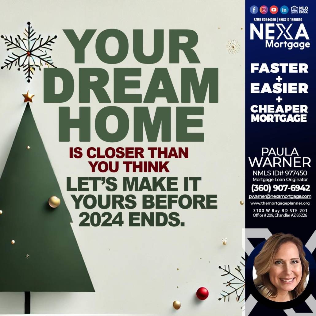Hi, my name is Paula Warner. I’m a Loan Officer with NEXA Mortgage LLC., offering personalized mortgage solutions, fast customized quotes, great rates and service with integrity.